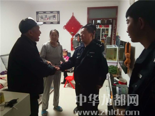 民警一邊安撫老人情緒,一邊進一步與老人溝通,得知其子名叫趙冬明,在周口市開發(fā)區(qū)地稅局工作。老人沒有記住家人電話、無法聯(lián)系,民警于是開車將老人送至周口市開發(fā)區(qū)地稅局家屬院,經(jīng)多方打聽終于找到老人兒子趙冬明家,將老人安全送到家中。老人激動的熱淚盈眶,并向民警表示感激。
