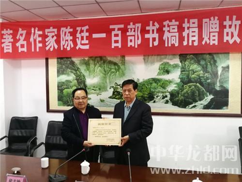 中華龍都網訊(周口報業(yè)全媒體記者 李瑞才 通訊員 楊光宏 文圖)4月1日上午,鹿邑籍中國著名傳記作家陳廷一百部書稿捐贈故里交接儀式,在老子故里鹿邑縣委黨校二樓會議室舉行。