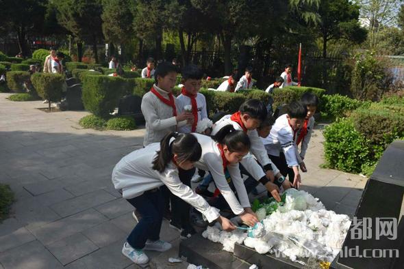 校長王新剛教育同學(xué)們要傳承革命先烈偉大的愛國主義精神和敢于擔(dān)當(dāng)?shù)呢?zé)任意識,勤奮學(xué)習(xí),努力成才。學(xué)生代表陳俞含同學(xué)發(fā)言慷慨激昂,代表全體學(xué)生表達(dá)了報效祖國的決心。全體少先隊員在墓碑前宣誓,“熱愛祖國、誠實勇敢、自律自強(qiáng)、奮發(fā)有為、振興中華?!鄙傧汝爢T們的鏗鏘誓言響徹在烈士陵園上空。整個過程中,莊嚴(yán)肅穆。隨后,全體師生排著整齊的隊伍,繞墓碑一周,依次將白花擺放在烈士墓前,并深深鞠躬,表達(dá)對烈士的敬意與懷念。