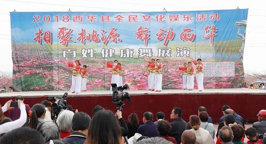 中華龍都網(wǎng)訊(周口報(bào)業(yè)全媒體記者 張猛)在西華縣第十四屆桃花節(jié)期間,由縣委宣傳部、縣文廣新局主辦的“相聚桃源 舞動(dòng)西華”百姓健康舞展演活動(dòng),在黃橋鄉(xiāng)萬畝桃園舉行,來自全縣的10 余支舞蹈隊(duì)參加展演。活動(dòng)吸引眾多市民、游客前來觀看。