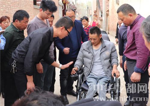 中華龍都網(wǎng)訊(周口報業(yè)全媒體記者 李瑞才 通訊員劉傳保 胡洪濤圖文)前不久,本網(wǎng)曾報道了鹿邑太清宮鎮(zhèn)男子王成濤因從10樓墜落致癱瘓,自愿捐出器官救別人的事跡,看到報道后,許多網(wǎng)友紛紛稱贊王成濤。為了方便王成濤活動,近日,在鹿邑縣委宣傳部、縣文明辦的倡導(dǎo)和參與組織下,鹿邑星宇電子商務(wù)有限公司的總經(jīng)理王朝華、郭彥山,副總經(jīng)理孫永建等人來到了太清宮鎮(zhèn)楊橋村,專門為王成濤送來他們在網(wǎng)上訂購的電動輪椅。