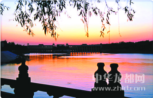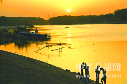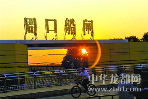 落日余暉下的沙潁河一片靜謐,掩映在夕陽下的周口大閘,更是美輪美奐,讓人流連忘返。解朝中 攝