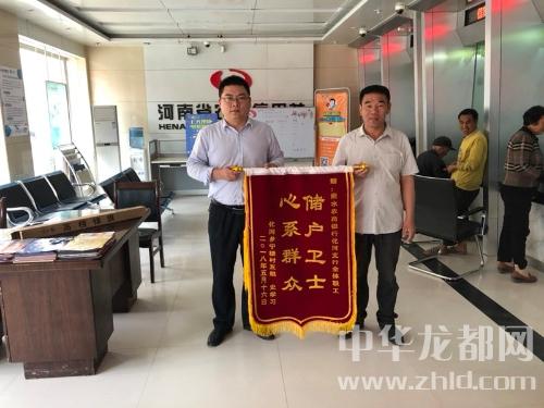 中華龍都網(wǎng)訊(周口報(bào)業(yè)全媒體記者 付永奇 通訊員 高少輝)5月24日上午,商水縣化河鄉(xiāng)村民史學(xué)習(xí)和村支書一同來(lái)到商水農(nóng)商銀行化河支行,為該支行送來(lái)一面“儲(chǔ)戶衛(wèi)士 心系群眾”的榮譽(yù)錦旗,感謝該支行幫其找到丟失的現(xiàn)金。