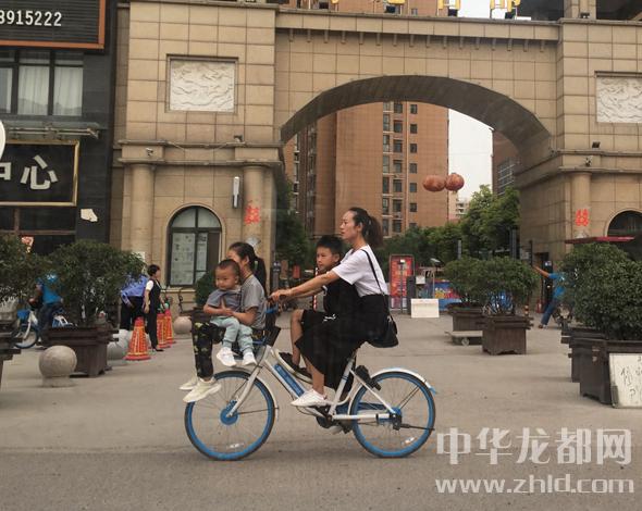 昨日,在周口市區(qū)沙潁河大慶路大橋南,一名女子騎共享單車,搭載3名孩子。目前我市投放的共享單車并不具備搭載乘客的功能,如此“共享”,隱患很多。市交警部門提醒廣大市民,出行要選擇恰當(dāng)方式,在追求方便的同時別忘了安全。