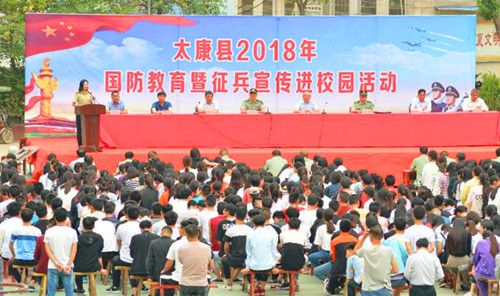 中華龍都網(wǎng)訊(周口報(bào)業(yè)全媒體記者 馬治衛(wèi) 通訊員 許皓)5月29日,太康縣2018年國防教育暨征兵宣傳進(jìn)校園活動(dòng)啟動(dòng)儀式在該縣第二高級(jí)中學(xué)舉行。太康縣委常委、常務(wù)副縣長張保華,縣人武部部長于永前等領(lǐng)導(dǎo)出席啟動(dòng)儀式。