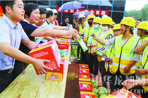 中華龍都網(wǎng)訊周口報(bào)業(yè)全媒體記者 張勁松 蘇千 文/圖)“各級(jí)領(lǐng)導(dǎo)沒有忘記我們這些高溫下作業(yè)的農(nóng)民工,不僅對(duì)我們進(jìn)行了安全知識(shí)培訓(xùn),還給我們送來了慰問品,我非常感謝他們?!鞭r(nóng)民工朱紅軍捧著香皂、花露水等防暑降溫用品,高興不已。