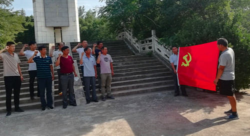 在杜崗會(huì)師紀(jì)念碑前,該所黨組書記張偉民帶領(lǐng)農(nóng)科所全體黨員面對(duì)黨旗莊嚴(yán)宣誓。入黨積極分子及扶貧隊(duì)員表示,通過(guò)今天的主題黨日教育活動(dòng),更加堅(jiān)定了入黨的信心和決心,堅(jiān)定了為共產(chǎn)主義奮斗的信念,在以后的工作在中,一定更加積極的向黨組織靠攏,聽(tīng)黨的話,自覺(jué)接受黨組織的監(jiān)督和考驗(yàn)。