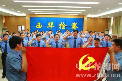 中華龍都網(wǎng)訊(周口報業(yè)全媒體記者 竇娜 通訊員 屈琳琳)“我志愿加入中國共產(chǎn)黨,擁護黨的綱領(lǐng),遵守黨的章程,履行黨員義務,執(zhí)行黨的決定……”6月28日,面對鮮紅的黨旗,西華縣人民檢察院副檢察長、黨支部書記劉新建帶領(lǐng)全體黨員高舉右手,重溫入黨誓詞。