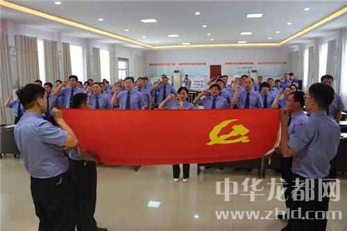 最后,全體干警面對(duì)黨旗進(jìn)行了莊嚴(yán)的宣誓,鏗鏘的誓言堅(jiān)定了干警們永遠(yuǎn)跟黨走的信念!