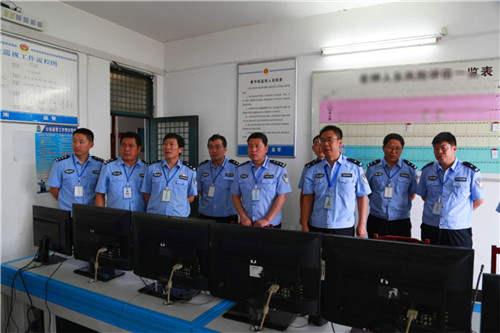陳鳳祥在看守所監(jiān)管大隊(duì)長(zhǎng)郭景靈、教導(dǎo)員譚林生的陪同下,參加了集體交接班,并先后來(lái)到收押大廳、監(jiān)控室、巡視道、監(jiān)區(qū)、監(jiān)控中心等重點(diǎn)部位進(jìn)行了實(shí)地查看,要求全體監(jiān)所民警嚴(yán)格落實(shí)各項(xiàng)管理工作制度,全力保障監(jiān)所安全。