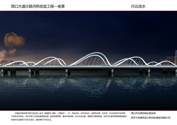 今后一個時期,結合水系的綜合治理,我市還將陸續(xù)開工建設數十座橋梁,并且秉承一橋一風格的設計特色,展示出每座橋梁的文化內涵,通過幾年的努力,把周口中心城區(qū)打造成百座橋梁薈萃、風格各異、特色鮮明的橋梁博物館。