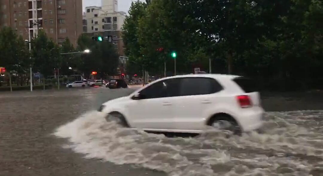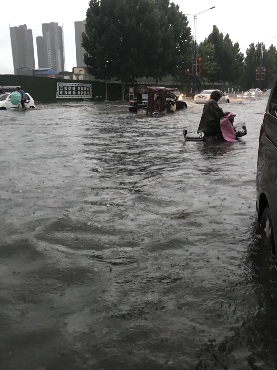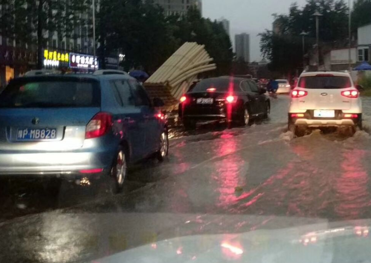 記者在周口市東新區(qū)觀察到,降水從26日下午4點多開始,一直持續(xù)到夜間,其間伴有雷電和大風(fēng)。26日傍晚6時許,記者在周口市文昌大道看到,積水嚴(yán)重的地方已經(jīng)淹沒了自行車大半個輪胎,一些行人涉水而行,車輛則猶如沖浪前進。