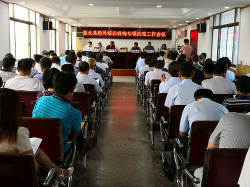 會(huì)上宣讀了《商水縣校外培訓(xùn)機(jī)構(gòu)專項(xiàng)治理方案》?!斗桨浮芬?guī)定此次校外培訓(xùn)機(jī)構(gòu)專項(xiàng)治理工作任務(wù)重點(diǎn)解決七個(gè)方面的問題:一是對(duì)消防、食品、場(chǎng)所等存在重大安全隱患的校外培訓(xùn)機(jī)構(gòu)要立即停辦;二是對(duì)不具備辦學(xué)資格和條件的,停止辦學(xué)行為;三是糾正“超綱教學(xué)”、“提前教學(xué)”、“強(qiáng)化應(yīng)試”等不良行為;四是查處將培訓(xùn)結(jié)果與學(xué)校招生掛鉤的宣傳行為;五是依法從嚴(yán)治教,嚴(yán)厲查處不遵守教學(xué)計(jì)劃、“非零起點(diǎn)教學(xué)”等行為;六是建立校外培訓(xùn)機(jī)構(gòu)黑、白名單制度;七是建立治理校外培訓(xùn)機(jī)構(gòu)的長(zhǎng)效機(jī)制。校外培訓(xùn)機(jī)構(gòu)專項(xiàng)治理工作為期10個(gè)月,分三個(gè)階段進(jìn)行。