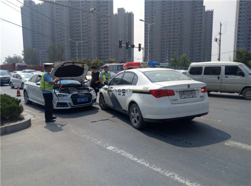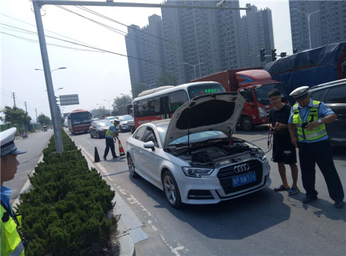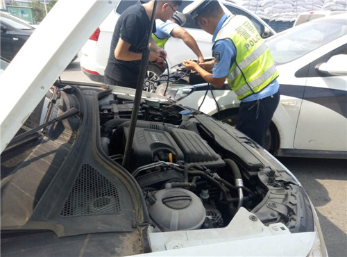 8月26日中午11點,周口港區(qū)公安分局民警發(fā)現(xiàn),一輛私家車行經(jīng)周項路周口港區(qū)路段時,發(fā)生故障停在快車道,影響道路暢通。港區(qū)交警部門負(fù)責(zé)人姜亞偉上前了解情況,得知汽車電瓶出現(xiàn)故障,無法正常發(fā)動。于是姜亞偉將警車開到私家車旁,用汽車電瓶連接線將警車電池與私家車鏈接,幫助車主啟動汽車,迅速恢復(fù)道路交通秩序。