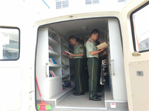 文化擁軍是商水縣圖書館的優(yōu)良傳統(tǒng)。當(dāng)天,流動圖書車一來到縣武警中隊駐地,士兵們便不約而同圍了過來,有的走上圖書車尋找喜愛的圖書,有的則直接坐在車上,認(rèn)真翻閱書籍。戰(zhàn)士小劉表示:“我最喜歡人物傳記方面的圖書,今天他們送來了許多。我要充分利用這些圖書,讀好書、立好志、當(dāng)好兵,為實現(xiàn)中國夢、強軍夢和祖國的國防建設(shè)作出應(yīng)有貢獻(xiàn)?!?/p>