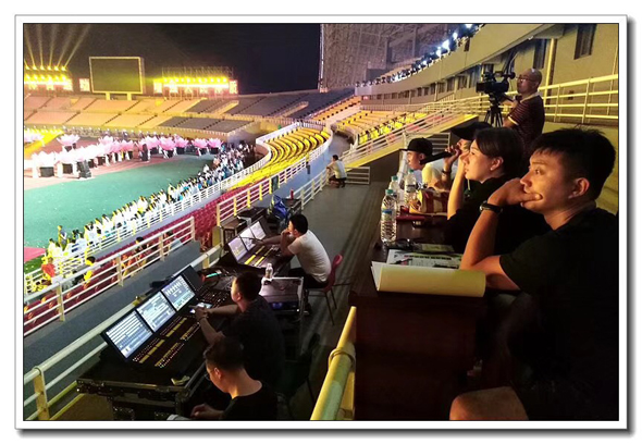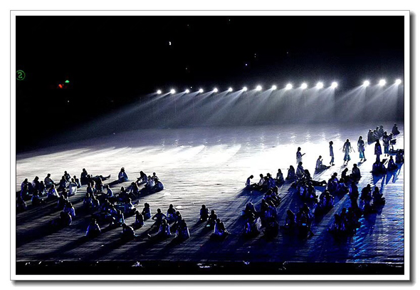 省運(yùn)會開幕式第二篇章《幸福家園》,昨晚八點(diǎn)在周口體育場對光排練,直至凌晨兩點(diǎn)結(jié)束。葛英 攝