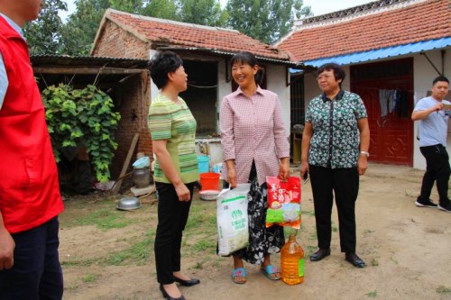 9月6日上午,扶溝縣委常委、組織部長(zhǎng)張雪芳,縣政協(xié)副主席孫春花帶領(lǐng)縣工商聯(lián)、縣慈善總會(huì)、愛心企業(yè)負(fù)責(zé)同志,來到汴崗鎮(zhèn)楊橋、姜莊兩個(gè)行政村的16戶困難家庭進(jìn)行幫扶慰問。汴崗鎮(zhèn)黨委書記高杰、鎮(zhèn)長(zhǎng)孫小光等鎮(zhèn)村干部陪同慰問。