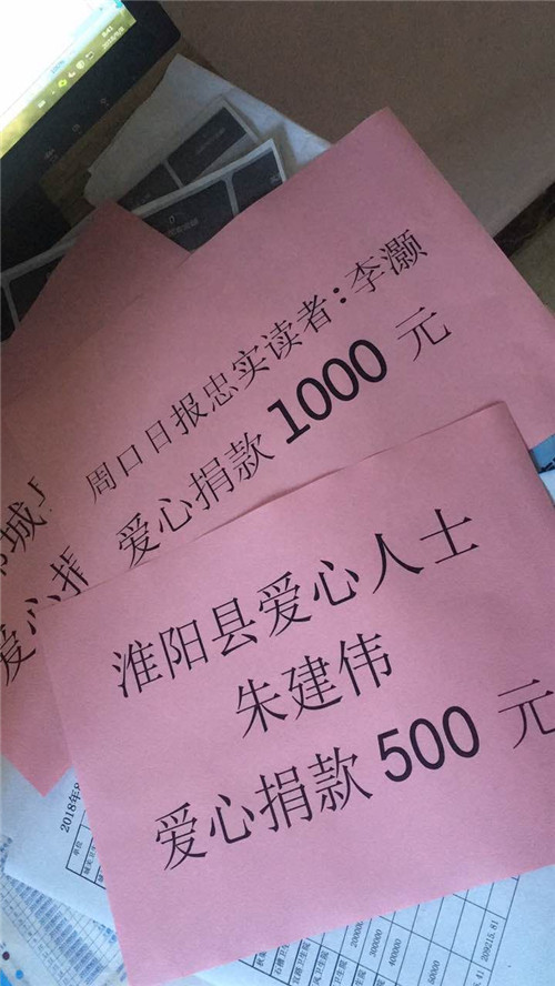 報道發(fā)出后,鄲城縣衛(wèi)計委主任付登霄第一時間作出響應,批復2000元錢資助趙家,囑咐駐村干部不能因家庭特困而導致孩子輟學,付登霄表示將長期關注這個貧困家庭;周口日報忠實讀者李灝遠在上海,看到報道后立即通過本報記者給趙家匯款1000元;淮陽愛心人士朱建偉愛心捐款500元;寧平鎮(zhèn)中心校正在組織教職員工捐款……