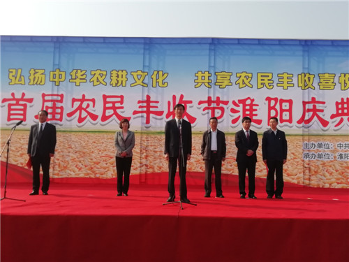 縣委書記馬明超宣布淮陽縣首屆“中國農(nóng)民豐收節(jié)”慶典活動(dòng)開幕??h委副書記、政法委書記岳新坦主持慶典儀式。戴亮和副縣長王汝凌分別致辭。