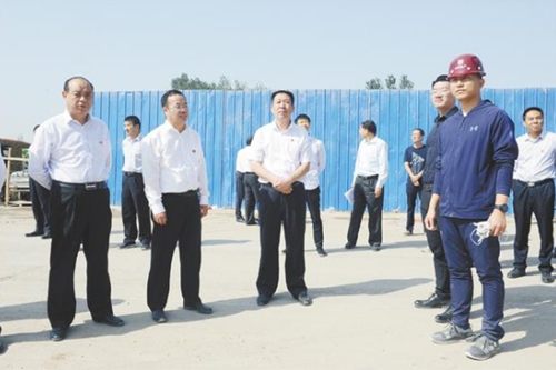 當(dāng)天上午,閆立超、張建黨一行先后來到貴和家園、聯(lián)營職專新校區(qū)、建業(yè)世悅府、乾和家園、萬達(dá)城市綜合體、仁和家園(西區(qū))、圣樺城市綜合體等12個(gè)項(xiàng)目施工現(xiàn)場進(jìn)行觀摩。每到一處,閆立超、張建黨一行都詳細(xì)聽取項(xiàng)目負(fù)責(zé)人的匯報(bào),對施工過程中遇到的困難和問題進(jìn)行現(xiàn)場研判,現(xiàn)場提出解決方案。