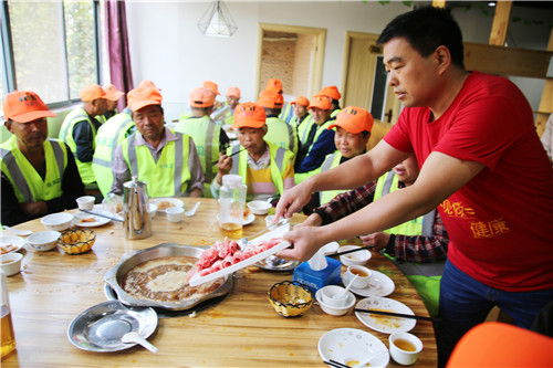 “環(huán)衛(wèi)工人的收入都不高,平時(shí)可能舍不得花錢吃頓好的,每天都見(jiàn)他們辛苦勞作,我就想犒勞犒勞他們?!睋?jù)了解,一個(gè)禮拜前劉東亞就開(kāi)始著手準(zhǔn)備,并把自己的想法告訴了環(huán)衛(wèi)部門相關(guān)負(fù)責(zé)人,得到了環(huán)衛(wèi)部門的大力支持。記者詢問(wèn)這次請(qǐng)客大概花費(fèi)了多少,他笑著說(shuō)其實(shí)也不算多,每桌飯菜的標(biāo)準(zhǔn)在500元左右。