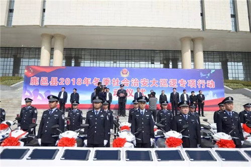 儀式上,縣領(lǐng)導(dǎo)為“百警駐百村”民警代表發(fā)放了第三批巡邏電動(dòng)車、臺(tái)式電腦、平板電腦等 “一村一警”警務(wù)裝備。儀式結(jié)束后,隨著梁建松一聲令下,公安民警統(tǒng)一登車,駛向大街小巷,開展第集中大巡邏。