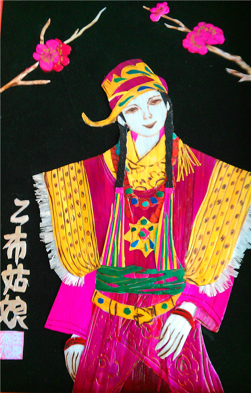 王海群在岳母的點(diǎn)撥下,很快融會(huì)貫通了秸稈畫(huà)的熏、蒸、漂、刮、推、燙,以及剪、刻、編、繪等技藝,作品一件比一件好,對(duì)秸稈人物畫(huà)的開(kāi)眼技藝達(dá)到爐火純青的地步。