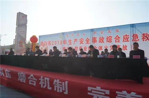11月23日上午,周口市大型商業(yè)綜合體火災(zāi)事故應(yīng)急救援綜合演練活動(dòng)在淮陽縣天鴻世貿(mào)商場(chǎng)舉行。市政府副秘書長馮干敏,市安委會(huì)副主任、安監(jiān)局局長胡恩勇,市消防支隊(duì)副支隊(duì)長李華兵,淮陽縣委書記馬明超,縣長王毅,以及各縣(市)區(qū)主管安全工作的政府領(lǐng)導(dǎo)出席演練觀摩活動(dòng)?;搓柨h政府應(yīng)急辦、消防大隊(duì)、安監(jiān)局、公安局、衛(wèi)計(jì)委、環(huán)保局、住建局、天鴻世貿(mào)有限公司等20余家單位300余人參與演練活動(dòng)。