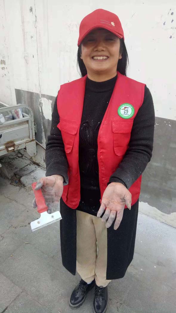 周口市啄木鳥志愿者服務(wù)工作委員會臨時黨支部書記、周口市慈孝文化促進(jìn)會會長孫彩云更是不怕臟,不怕累,連個手套都不帶,直接用雙手拿著鏟刀或者抹布清理墻上的小廣告,最后弄得雙手和滿身都是污漬?!盀榱宋覀兊某鞘懈粒鳛橐幻驹刚?,就應(yīng)該不怕累,不怕苦?!?/p>