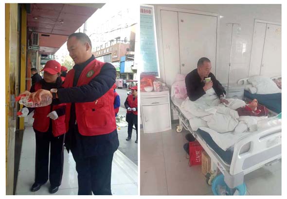 志愿者閆冠杰清理小廣告中崴傷腳