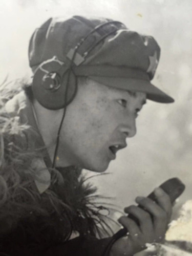 這時候,反撲的敵人越來越近了,蔣慶泉向指揮部的兩名話務(wù)戰(zhàn)士谷德泰和陸洪坤報告了這一情況??粗绯彼惚平臄橙?,蔣慶泉拼盡全力,沖著步話機嘶吼:“別廢話!向我所在的碉堡頂開炮!”。在陣地暗堡中,幸存的戰(zhàn)士緊緊圍在蔣慶泉身邊,以保護他向我炮兵指揮部通報目標的位置。