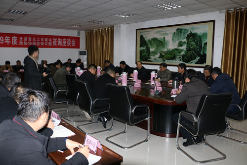 12月6日上午,鹿邑縣政協(xié)主席雷申主持召開“2019年度全縣重點(diǎn)工作建議和縣政協(xié)協(xié)商監(jiān)督議題征詢座談會(huì)”。政協(xié)副主席丁顯輝、黨組副書記胡立柱,副主席李蘭明、宋克言等出席會(huì)議。全縣各鄉(xiāng)鎮(zhèn)、辦事處政協(xié)聯(lián)絡(luò)組長參加會(huì)議,并分別圍繞“三大攻堅(jiān)戰(zhàn)”、農(nóng)村人居環(huán)境改善及產(chǎn)業(yè)發(fā)展、城市管理等民生問題,積極進(jìn)行協(xié)商建言。政協(xié)機(jī)關(guān)副科級(jí)以上干部參加座談會(huì)。