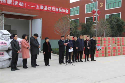 太康縣服裝協(xié)會會長李陽光說,扶貧濟困、守望相助是中華民族的傳統(tǒng)美德,困難群眾不僅需要政府的關心和扶助,也需要社會的關愛和幫扶。此次捐贈的萬條棉被萬件棉衣,不僅僅是出自服裝協(xié)會的意愿,也是發(fā)自通泰紡織有限公司的社會責任感,他表示,今后通泰紡織有限公司還將積極參與到精準扶貧中去,繼續(xù)開展慈善助困等公益活動,為更多的貧困群眾送去溫暖、送去關愛,為更多的貧困群眾早日脫貧奉獻自己的綿薄之力。