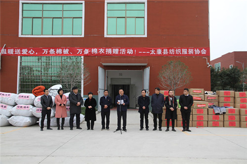 太康縣委副書記、政法委書記王程清在致辭中指出,扶貧濟困、樂善好施是中華民族的傳統(tǒng)美德,通泰紡織、銀鑫棉業(yè)、萬利源棉業(yè)等縣紡織協(xié)會成員單位通過捐款捐物、產業(yè)幫扶、就業(yè)幫扶、基礎設施幫扶等多種形式投入到脫貧攻堅行動中,幫助貧困群眾發(fā)展生產、改善生活條件、擺脫疾病困擾、完成學業(yè)夢想、為貧困群眾早日脫貧貢獻出自己的一份力量,并為他們捐贈棉衣棉被的善舉表示感謝。