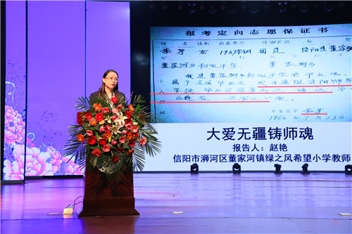 報告會上,李芳的同事綠之風希望小學(xué)教師趙艷、李芳的老師信陽職業(yè)技術(shù)學(xué)院語言傳媒學(xué)院教師熊可書、李芳的女兒代雨辰和信陽市浉河區(qū)委宣傳部新聞中心記者劉亞迪分別以《大愛無疆鑄師魂》,《那是青春吐芳華》,《有媽媽的地方處處是溫暖》,《大別山上映山紅》為題,深情講述李芳同志一心想著學(xué)生,全身心投入教育工作,扎根鄉(xiāng)村獻身教育事業(yè)的點點滴滴,詮釋了李芳同志不忘初心、潛心育人、敬業(yè)奉獻、舍生忘我的高尚品德和優(yōu)秀品質(zhì),為與會者帶來了一場感人肺腑的報告會。