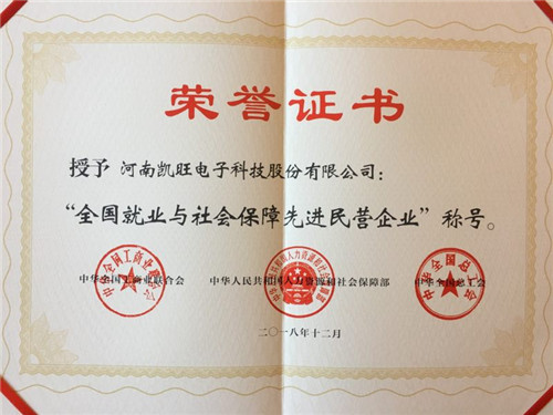 12月20日上午,記者獲悉在全國召開的就業(yè)與社會(huì)保障先進(jìn)民營企業(yè)暨關(guān)愛員工實(shí)現(xiàn)雙贏表彰大會(huì)上,我市民營企業(yè)河南凱旺電子科技股份有限公司榮獲“全國就業(yè)與社會(huì)保障先進(jìn)民營企業(yè)”稱號(hào),中華全國工商業(yè)聯(lián)合會(huì)、中華人民共和國人力資源和社會(huì)保障部、中華全國總工會(huì)為該企業(yè)頒發(fā)了榮譽(yù)證書。