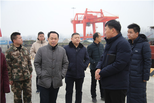在周口中心港碼頭,程若光向負(fù)責(zé)人了解當(dāng)前港口碼頭設(shè)備的運(yùn)轉(zhuǎn)運(yùn)行情況后,要求港口碼頭要在確保安全生產(chǎn)的情況下開(kāi)展各項(xiàng)工作。