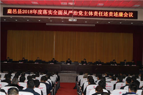 1月4日上午,鹿邑縣2018年度落實(shí)全面從嚴(yán)治黨主體責(zé)任述責(zé)述廉會(huì)議在縣委黨校一樓報(bào)告廳召開??h委書記梁建松出席會(huì)議并講話??h委常委、紀(jì)委監(jiān)察委主任韓林主持會(huì)議??h直各局委主要負(fù)責(zé)人、派駐紀(jì)檢組、巡查辦主要負(fù)責(zé)人以及各鄉(xiāng)鎮(zhèn)辦事處黨(工)委書記、紀(jì)檢書記參加會(huì)議。