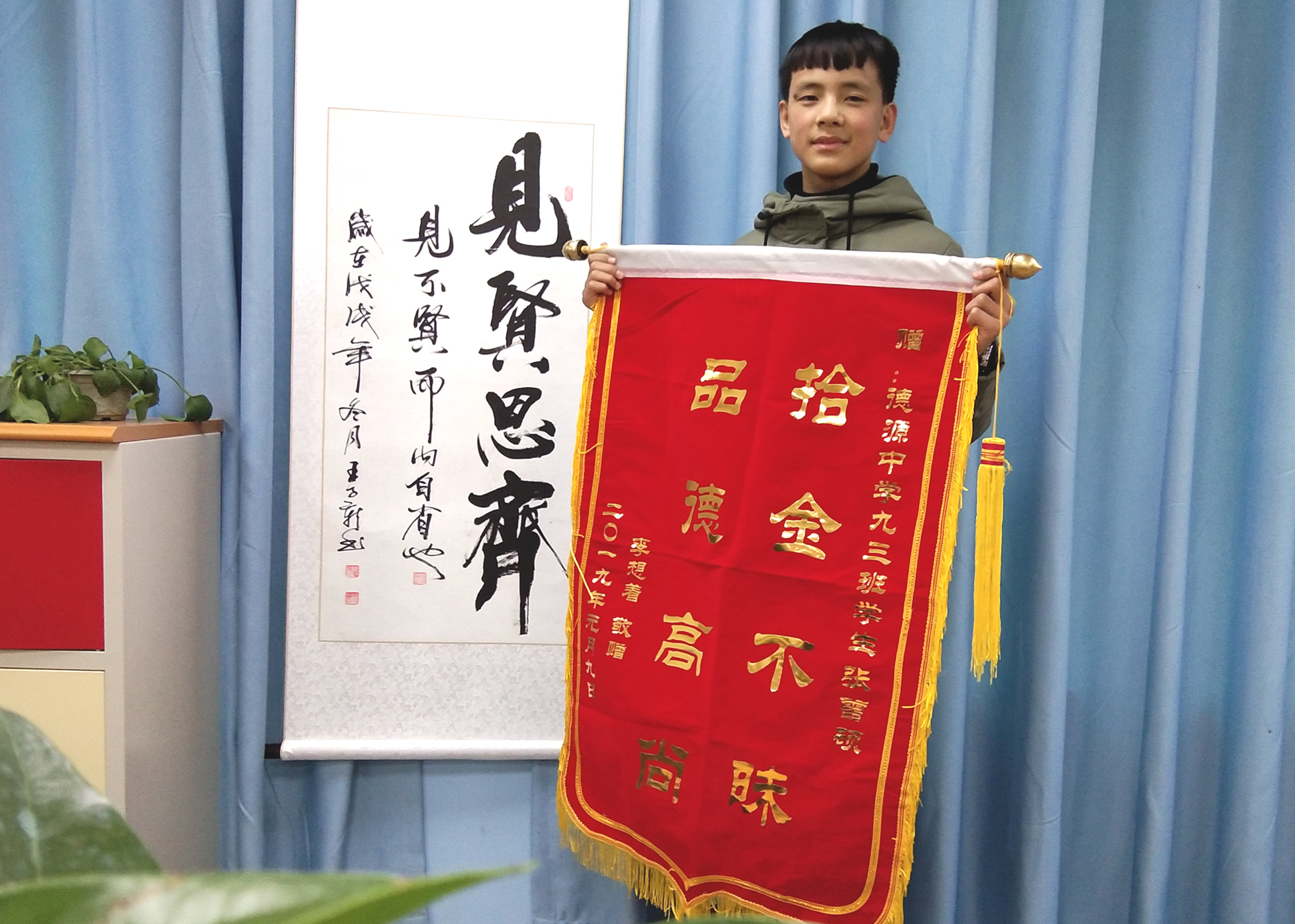 “我還以為找不回來了,里面除了錢還有那么多重要的證件,真的太重要了,我中午急著辦事情飯都吃不下!”下午3時,失主李想著手拿一面加急制作的錦旗來到學校向張曾碩和尹紀偉老師表示感謝。他說,能有這樣品質(zhì)高尚、拾金不昧的好孩子,是老師精心培養(yǎng)、父母言傳身教的結(jié)果。