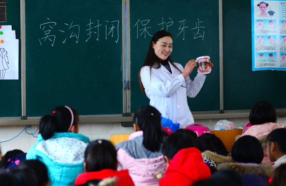 為加強口腔疾病健康教育和健康促進工作,提高兒童口腔疾病防治知識知曉率,近日,鄲城縣疾控中心組織口腔專業(yè)技術(shù)人員,到第三實驗小學(xué)開展“鄲城縣健康口腔助成長口腔健康教育活動”和“鄲城縣兒童口腔疾病綜合干預(yù)項目進校園活動”。在活動現(xiàn)場,口腔醫(yī)師為二年級學(xué)生上了三場生動的口腔健康教育課,詳細講解口腔疾病防治知識。