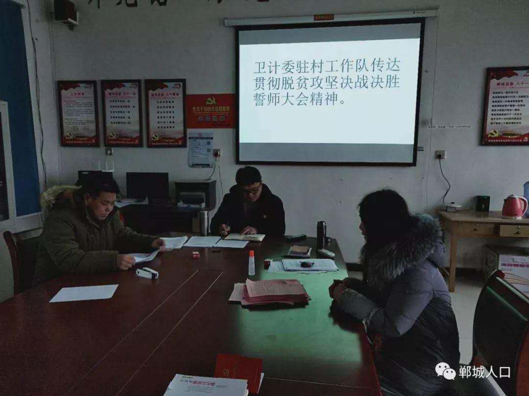 2 月 14 日上午,鄲城縣衛(wèi)計委領(lǐng)導(dǎo)班子繼2月 13 日下午第一時間召開貫徹學習全縣脫貧摘帽決戰(zhàn)決勝誓師大會精神會議后。按照付登霄主任工作指示,衛(wèi)計委副主任黃玉珍組織召開了衛(wèi)計委健康扶貧辦公室全體人員工作會。