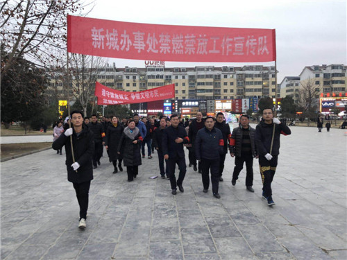 會后,黨工委書記張玉杰、辦事處主任王一博帶隊組織全體干部舉著橫幅,帶著紅袖標(biāo)徒步10多公里,到鹿鼎建材城、農(nóng)貿(mào)市場、世紀(jì)廣場、丁老家、張?zhí)枠恰⒘_堂社區(qū)等重點區(qū)域進(jìn)行宣傳。