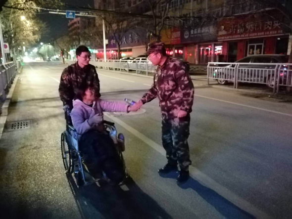 人民軍隊愛人民,無論山高水遠,歲暮天寒。2月18日凌晨1時許,武警周口支隊政委韓偉鋒查勤歸來,在支隊大門口恰巧遇到一位大姐獨自一人搖著輪椅艱難前行。當(dāng)晚氣象局預(yù)報有降雪,實時氣溫也只有-4℃。夜深人靜,天凝地閉,韓政委有些擔(dān)憂這位大姐的安全,連忙上前詢問情況,并步行推著輪椅將大姐送至目的地。其實,這件事只是武警周口支隊愛民助民工作的一個縮影。