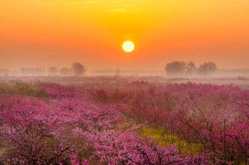每年3月底至4月上旬,西華潁河兩岸萬(wàn)畝桃花競(jìng)相開(kāi)放,樹(shù)下金燦燦的油菜花、綠油油的麥苗相映成趣,紅、黃、綠構(gòu)成了五彩繽紛的人間仙境,置身其中,花香沁人心脾,色彩絢麗奪目,景色美不勝收,恍如身處陶淵明筆下的“世外桃源”。