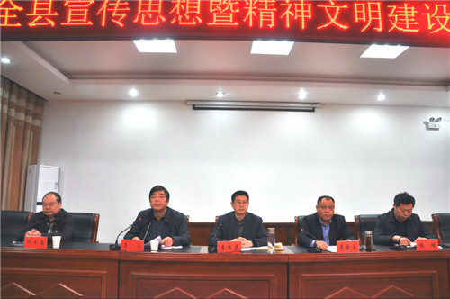 就如何做好今年的宣傳思想和精神文明建設(shè)工作,李本磊要求,要用好“學(xué)習(xí)強(qiáng)國”平臺(tái),強(qiáng)化理論武裝;要建好新時(shí)代文明實(shí)踐中心、鄉(xiāng)村志愿服務(wù)中心、縣級(jí)融媒體中心,筑牢基層陣地;要抓好“三城兩縣聯(lián)創(chuàng)”“六村共建”“三個(gè)起來”等三項(xiàng)活動(dòng),普惠人民群眾;要突出工作主線,聚焦主題宣傳;要堅(jiān)持團(tuán)結(jié)鼓勁,營造輿論強(qiáng)勢(shì);要立足凝神聚氣,倡樹文明新風(fēng);要發(fā)揮比較優(yōu)勢(shì),打造文化強(qiáng)縣;要著力增強(qiáng)“四力”,建設(shè)一流隊(duì)伍。