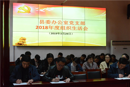 3月29日下午,鹿邑縣委辦公室黨支部召開2018年度組織生活會(huì)并開展民主評(píng)議黨員活動(dòng)。縣委書記梁建松,縣委常委、辦公室主任宋濤以一名普通黨員身份參加會(huì)議??h委辦公室機(jī)關(guān)全體同志參加會(huì)議。