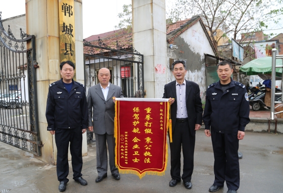 4月9日,南陽市市場(chǎng)監(jiān)督管理局和臥龍壓力容器有限公司一行4人專程來到鄲城,向鄲城警方表示誠(chéng)摯的感謝,并將一面寫有“重拳打假秉公執(zhí)法 保駕護(hù)航 企業(yè)衛(wèi)士”的錦旗送到鄲城縣公安局食藥環(huán)大隊(duì)民警手中。
