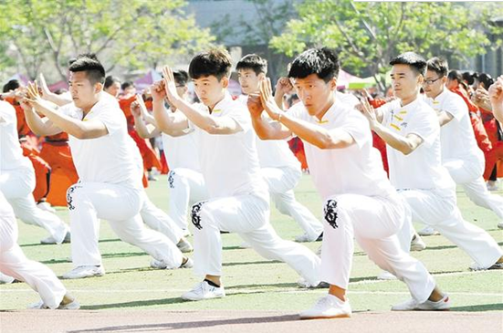 4月18日上午,周口師范學(xué)院第十五屆田徑運動會開幕,來自該校各個學(xué)院的數(shù)千名學(xué)子投入運動會健身活動中。700多名大學(xué)生在運動會上集體表演了心意六合拳,受到觀眾熱捧。記者 梁照曾 攝