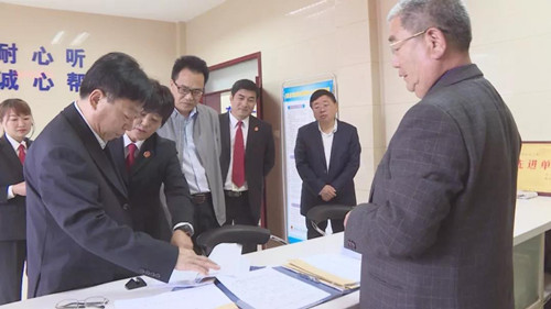 調(diào)研期間,馬軍杰一行還來到縣人民法院審判法庭訴訟服務(wù)中心的信訪接待中心、訴調(diào)對(duì)接中心、審判庭等處,與縣法院的工作人員面對(duì)面交流,了解信訪接待、便民服務(wù)、民事調(diào)解等工作的開展情況。