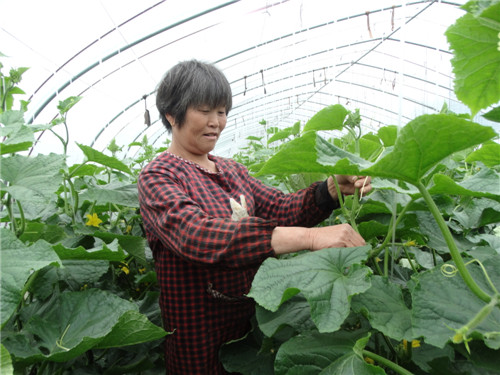 4月24日,沈丘縣周營鎮(zhèn)趙莊村生態(tài)蔬菜大棚基地里,綠油油的吊蔓黃瓜長勢喜人,少量已采摘上市。忙碌著的菜農(nóng)王翠霞告訴記者:“俺今年種了20畝地的大棚黃瓜,從種子肥料,到用水用藥,都有講究,要按標準化生產(chǎn),這樣種出來的黃瓜品質(zhì)好,客商搶著要。一畝地大棚瓜果蔬菜的年收入超過1.5萬元。”